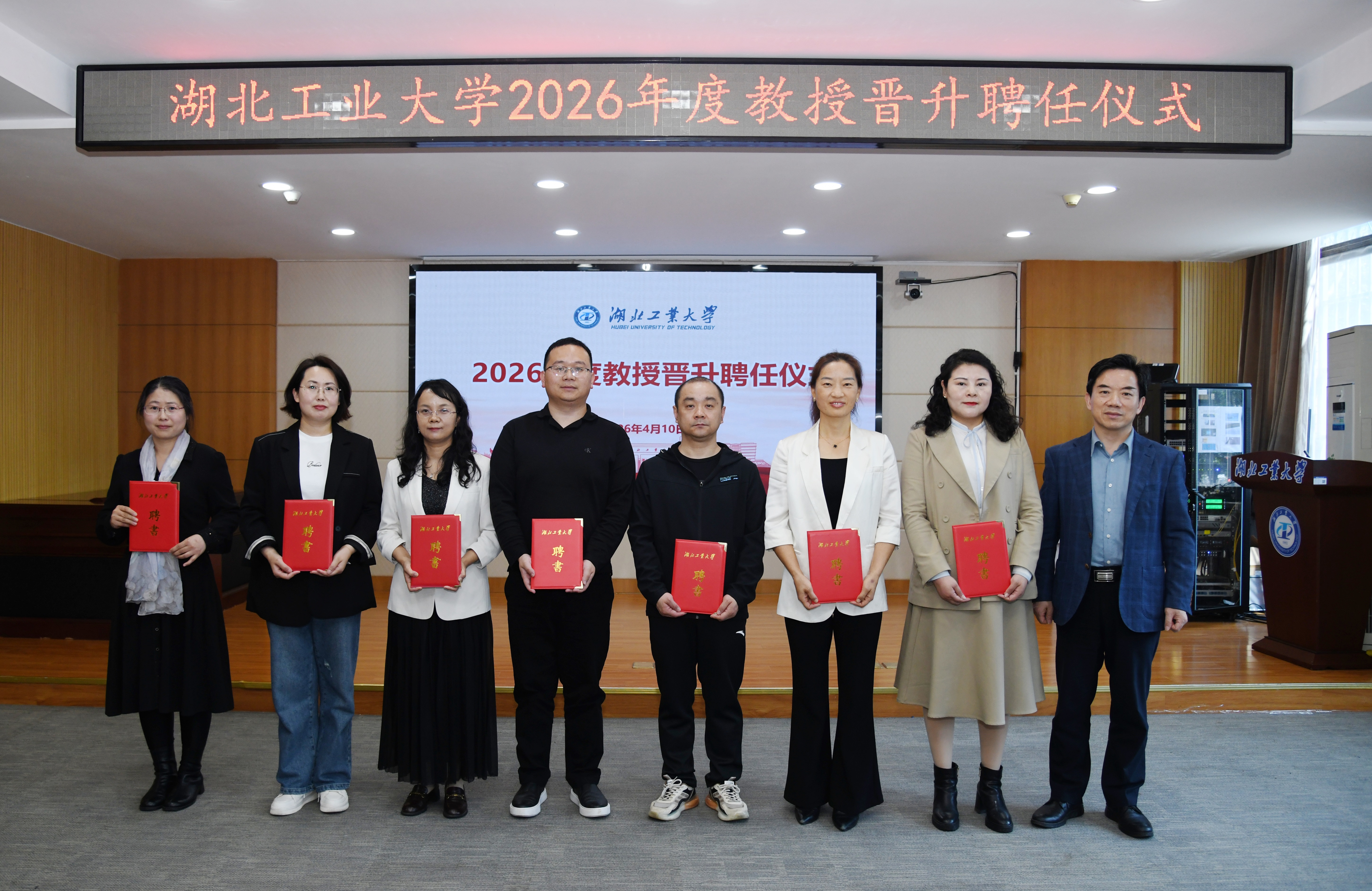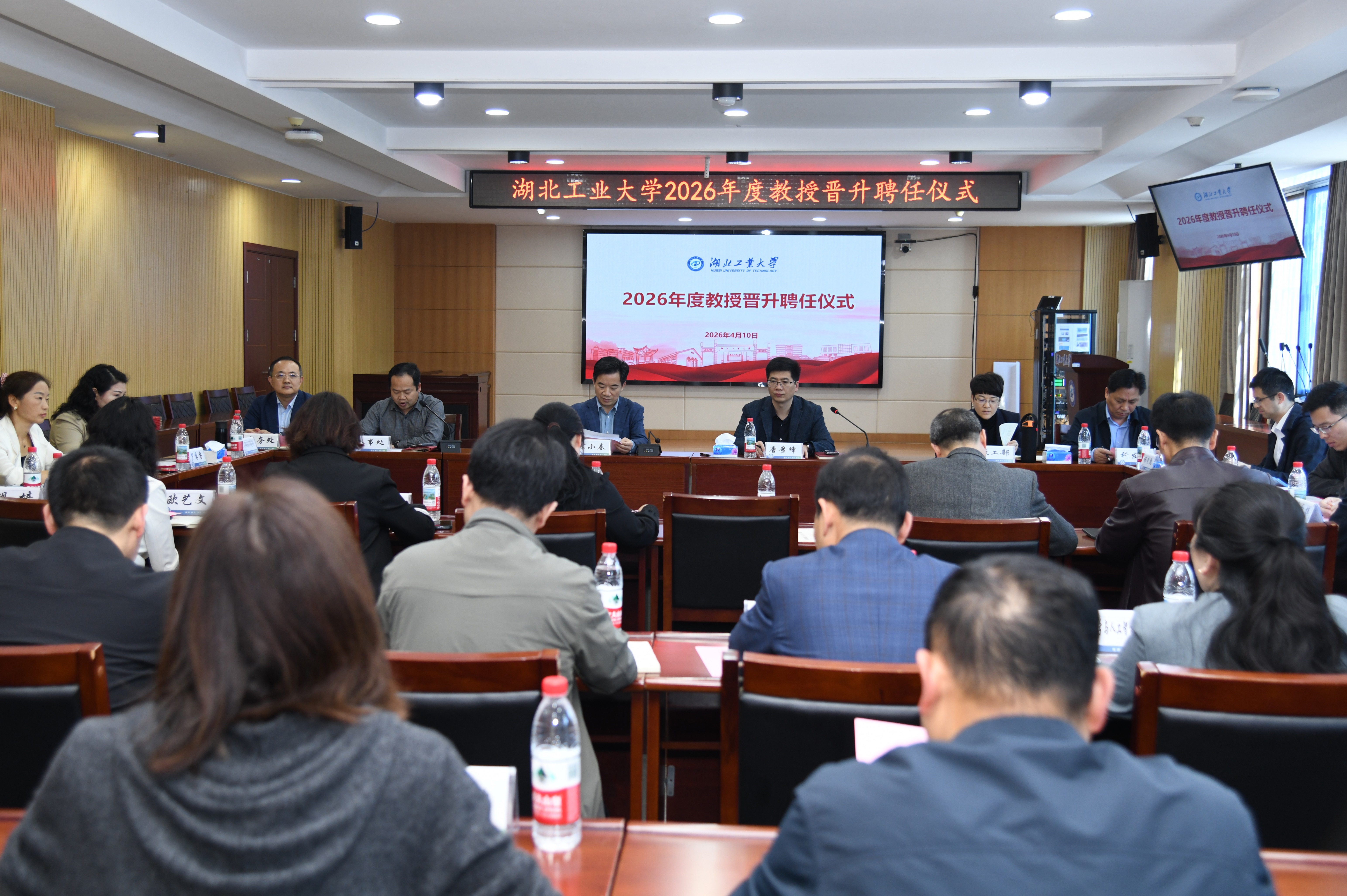 4月10日下午,学校2026年度教授晋升聘任仪式在行政楼一楼会议室举行。校党委副书记、校长宋小春出席仪式并讲话。校党委常委、副校长唐景峰主持聘任仪式。
